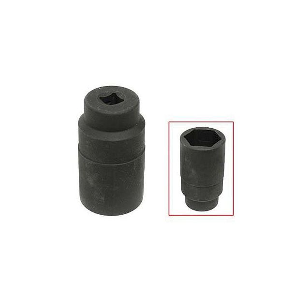 -36mm socket is machined to fit snugly on the rounded nut and shaft preventing slippage when removing the jam nut.